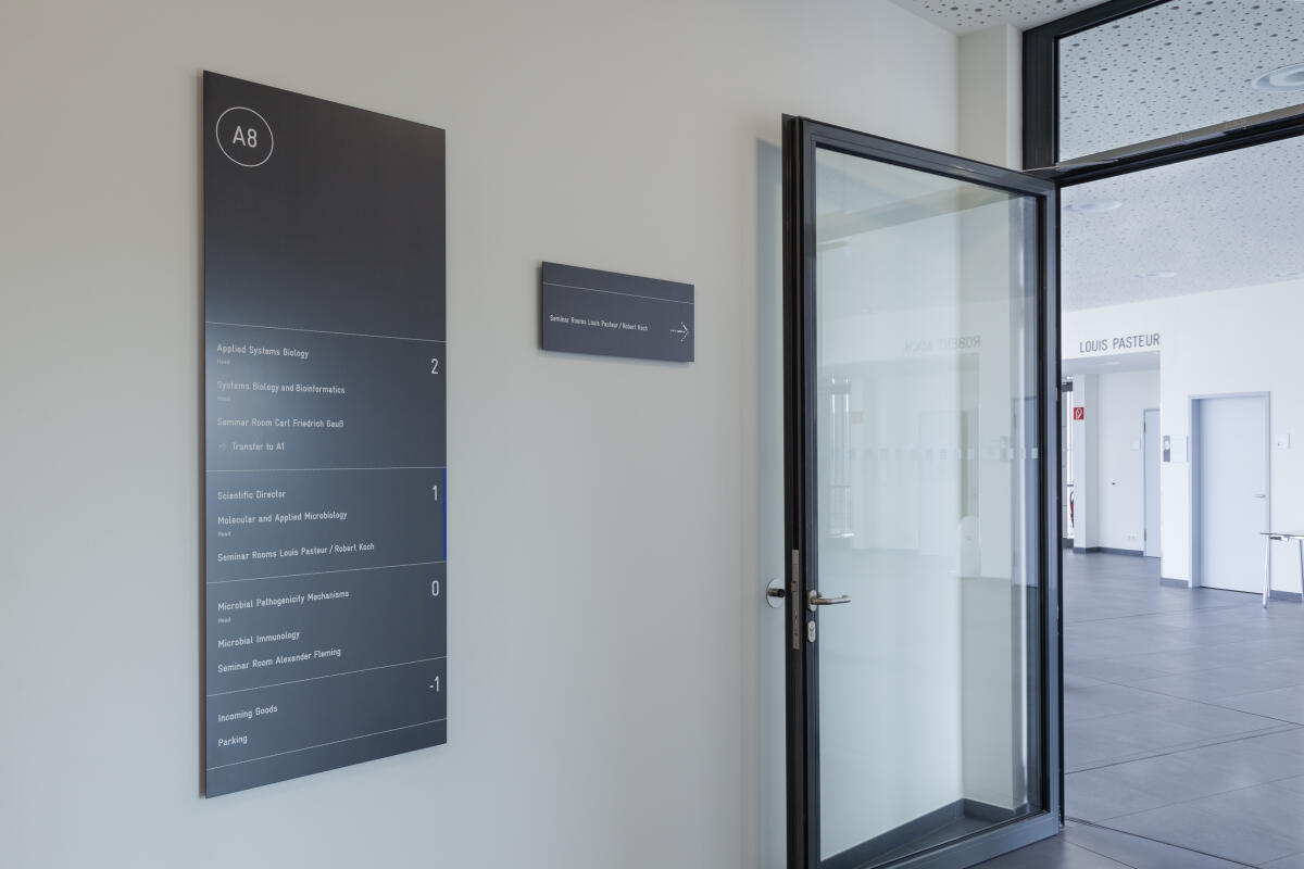 Mit dem neuen Leit- und Orientierungssystem hat das Hans-Knöll-Institut (HKI) ein übergreifendes Gestaltungs- und Kommunikationskonzept für seinen Campus realisiert. Das System erfüllt funktionale, technische und ästhetische Anforderungen und vermittelt zugleich ein einheitliches, zeitgemäßes Erscheinungsbild. Neben seiner orientierungsgebenden Funktion übernimmt es damit auch eine imagebildende Rolle.