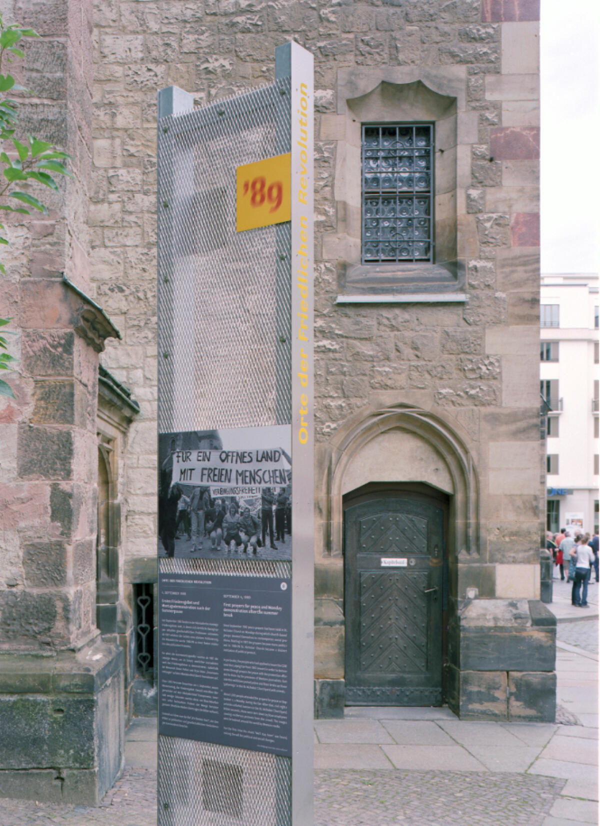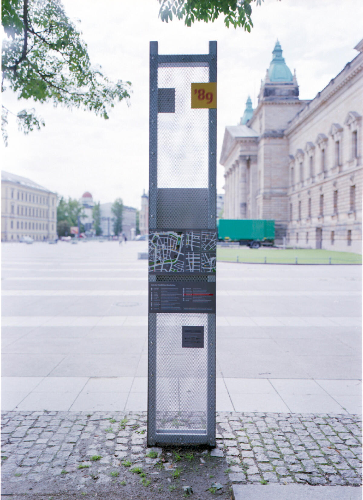 Thematische Stelen im Leipziger Stadtraum machen sowohl die räumliche Verteilung als auch den zeitlichen Verlauf der Friedlichen Revolution erlebbar. Sie veranschaulichen die Bedeutung von Zivilcourage, demokratischem Engagement und dem Einsatz der Bürgerinnen und Bürger für einen freiheitlichen, demokratischen Staat. Gleichzeitig erinnern sie an die Kraft der demokratischen Idee, die zur Selbstbefreiung von der Diktatur führte.